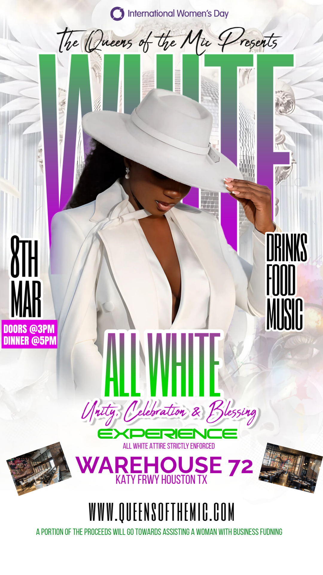 The Sunday All-White Affair is the signature closing experience of The Queens of the Mic: Big Biz Blessing – Faith & Finance, held in honor of International Women’s Day.