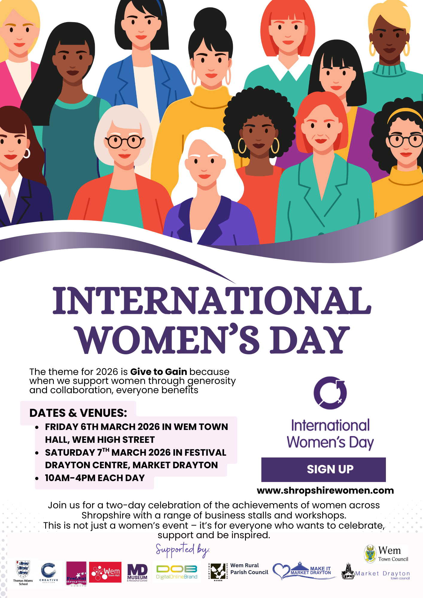 Here in Shropshire, we’re proud to bring this worldwide movement to our county with a two-day celebration of local women.