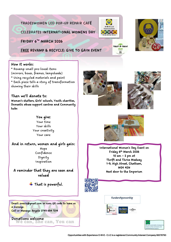 OWECIC past students are giving back through what they’ve learned from US. They revamp and recycle using their skills, and in doing that, others gain confidence, inspiration, opportunity and community.