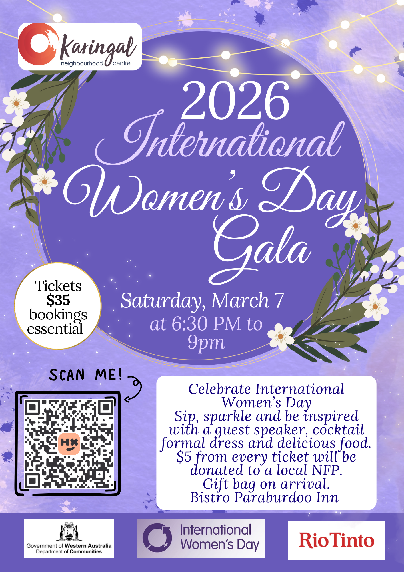 Come celebrate International Women's Day in Paraburdoo with an evening of connection, reflection and community.