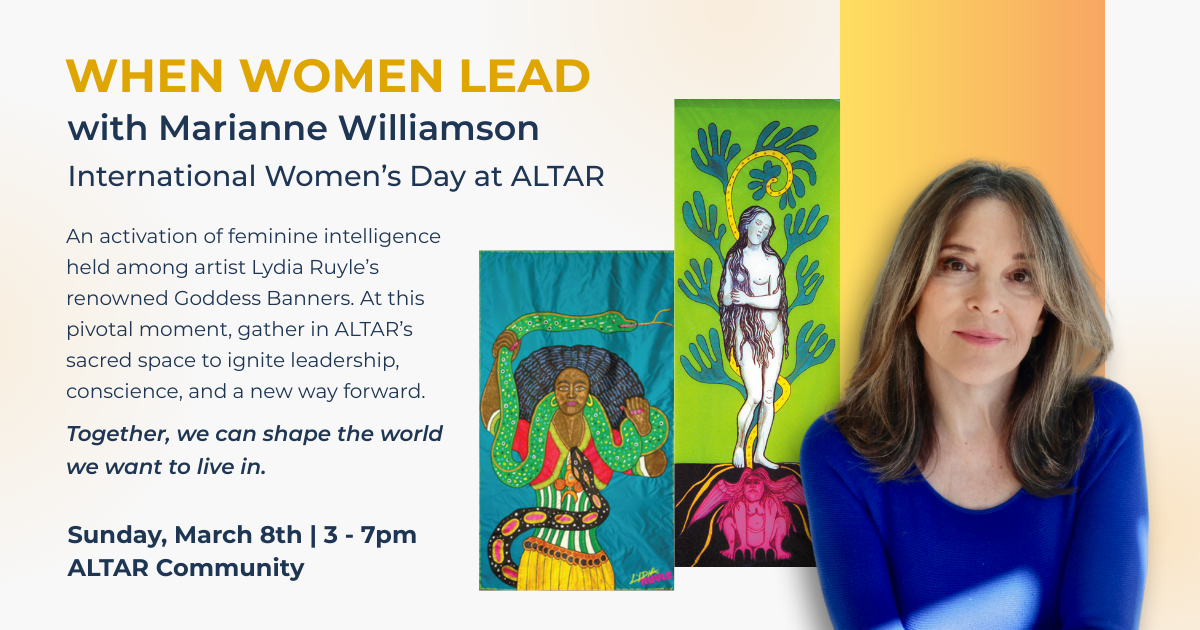 *Special Access Tickets are available in limited quantities! Includes admission with reserved seating a post-gathering Reception with Marianne Williamson from 6 - 7pm.