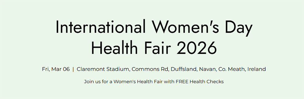 Join us for a celebration of women's health and well-being at our Women's Health Fair to mark this International Women's Day on Friday 7th March from 10am - 12pm sponsored by DNG Royal County, Skin and Bodywork, Keating's Oil, Boyne Dental & Klass Oil.