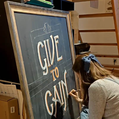 Lettering & brushpen enthusiast Cristhell creates a Give To Gain design uplifting others