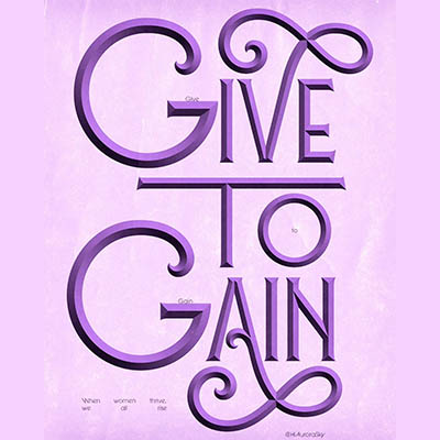 Artists worldwide create fabulous #GivetoGain designs to reinforce gender equality