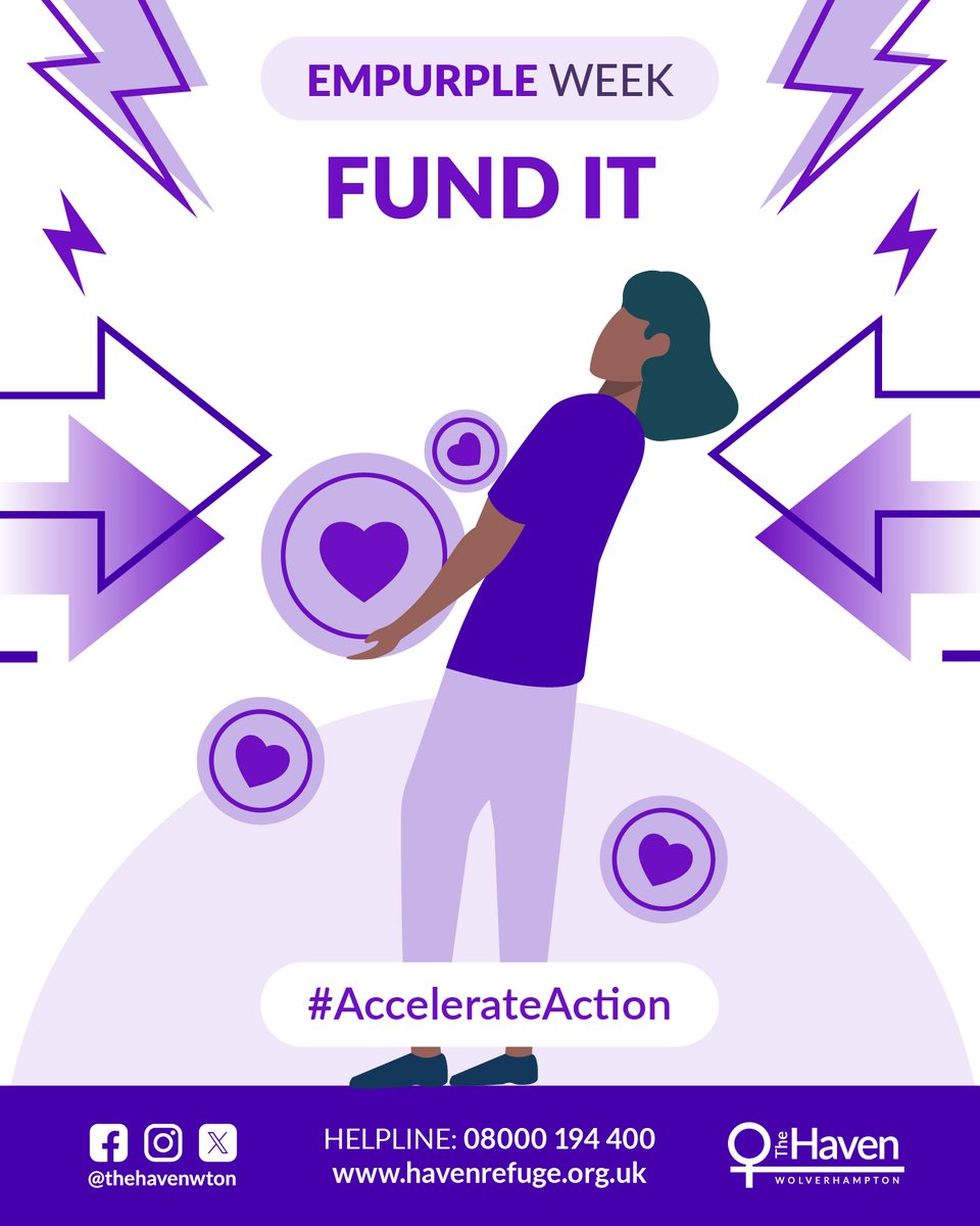 "Fund it to Accelerate Action. Tomorrow marks the start of Empurple Week and you can donate to fund life-saving services for victims and survivors of domestic abuse. Every contribution accelerates action!" said the Haven Wolverhampton.